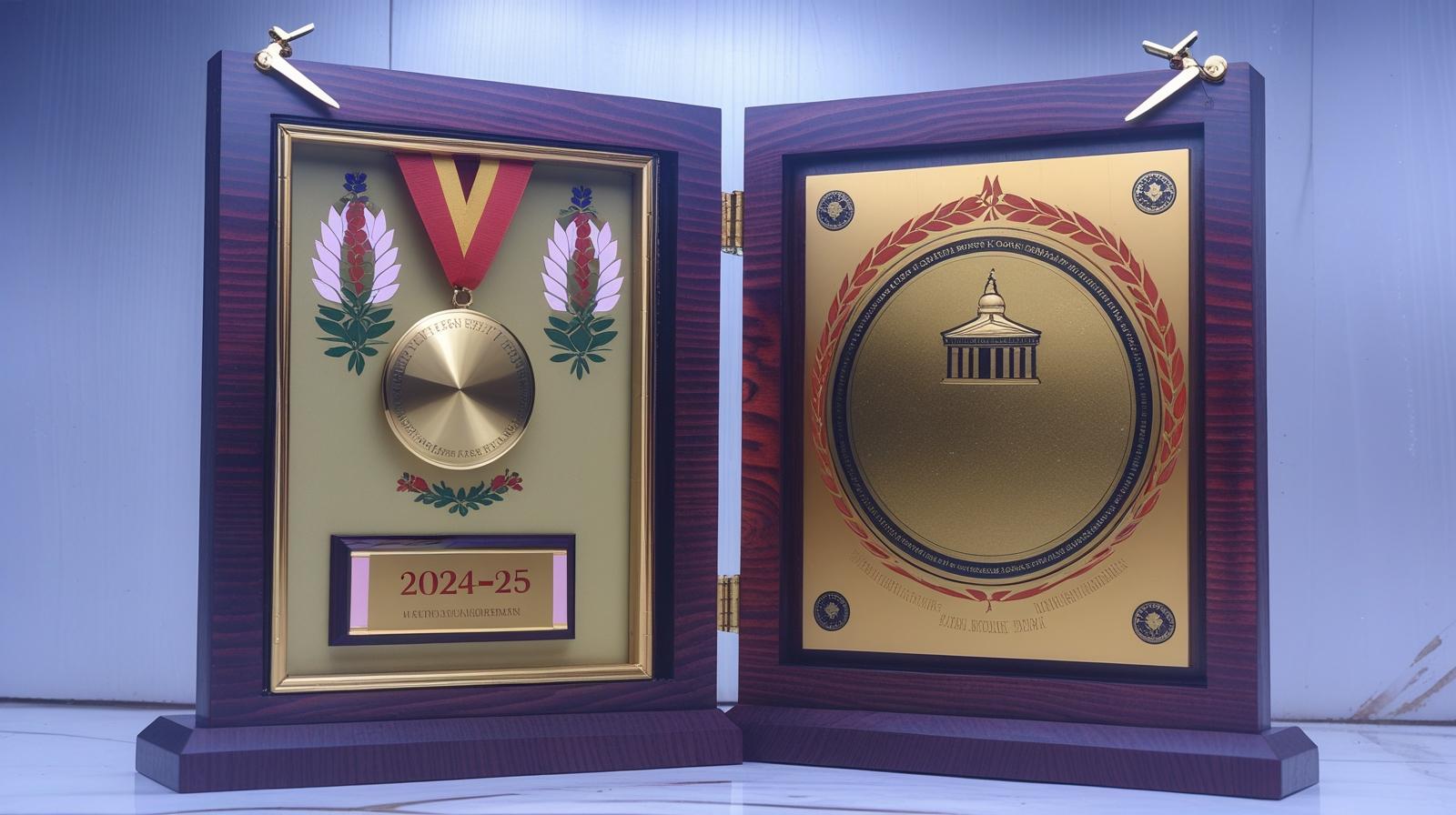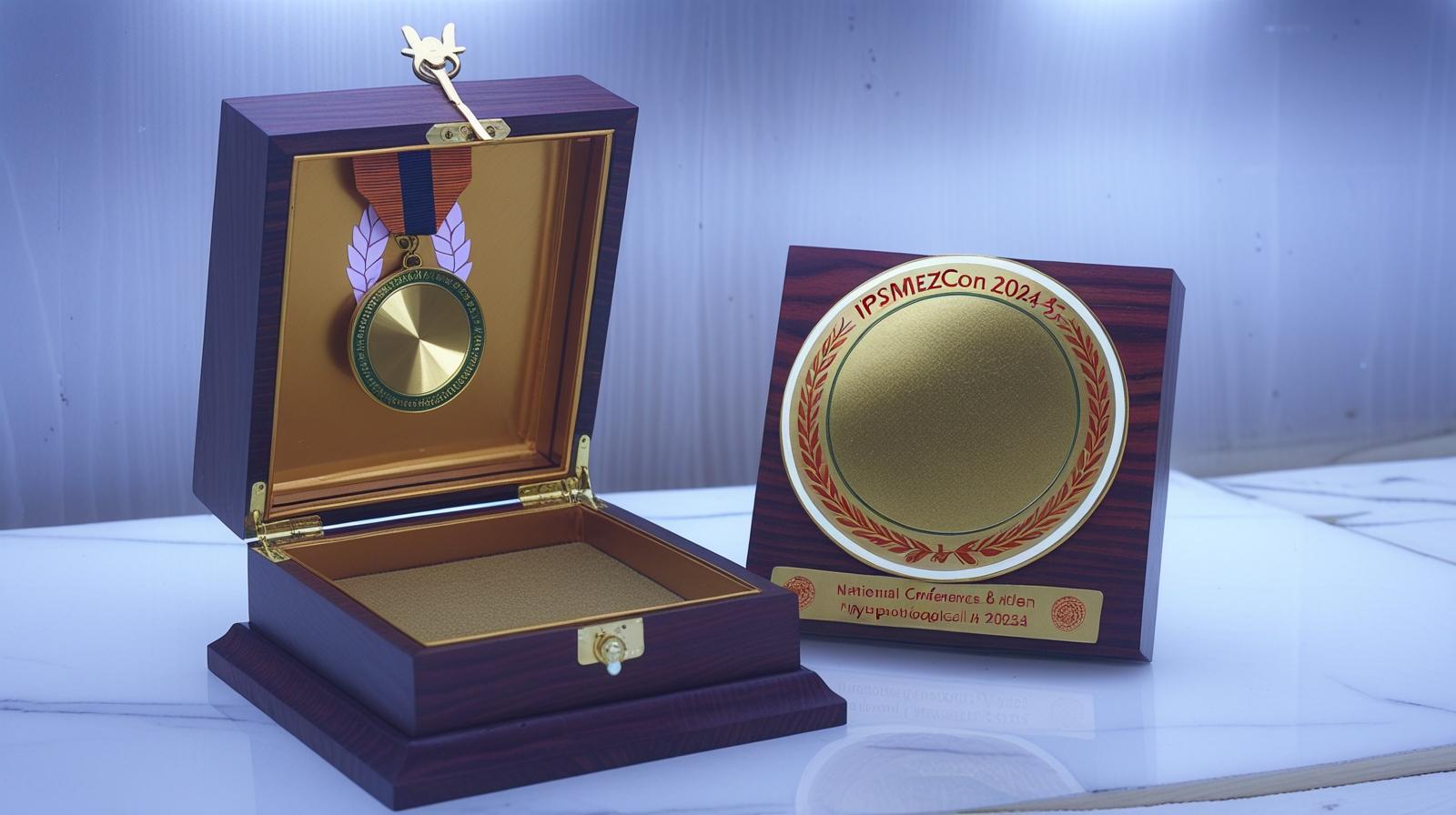 Celebrate academic excellence and distinguished participation at IPSMEZCON 2024-25 with this exclusive conference medal and plaque set. Meticulously crafted from high-quality wood, this elegant hinged box opens to reveal a commemorative medal with a vibrant yellow ribbon and a gold-engraved plaque featuring the National Conference details and the Indian Phytopathological Society insignia. Perfect for honoring keynote speakers, contributors, and top performers, this customized award set blends prestige, durability, and memorable design—all tailored for institutional recognition and lasting memories.